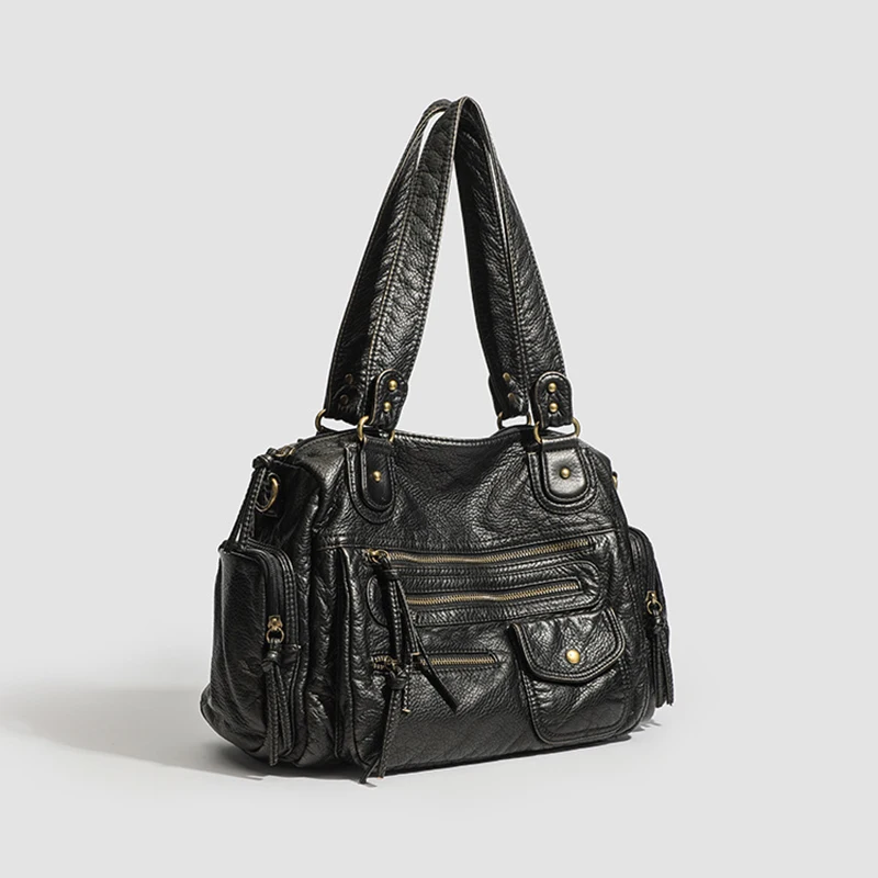 HAEX Women’s Punk Biker Tote Bag Large Capacity PU Leather Crossbody Purse with Multi Pockets for Work Commute Moto Style