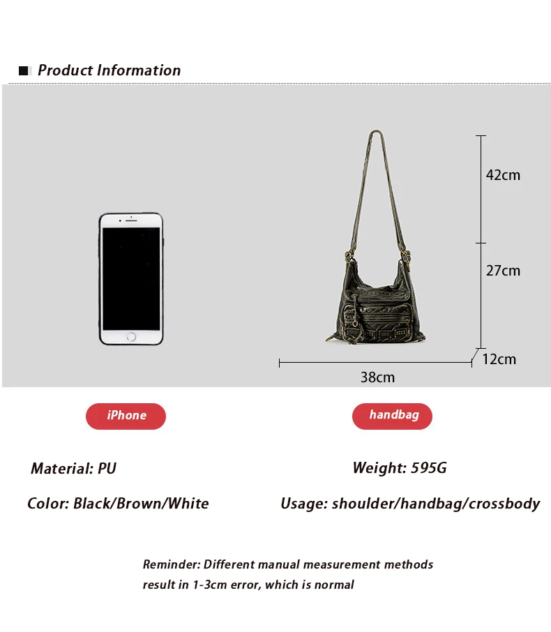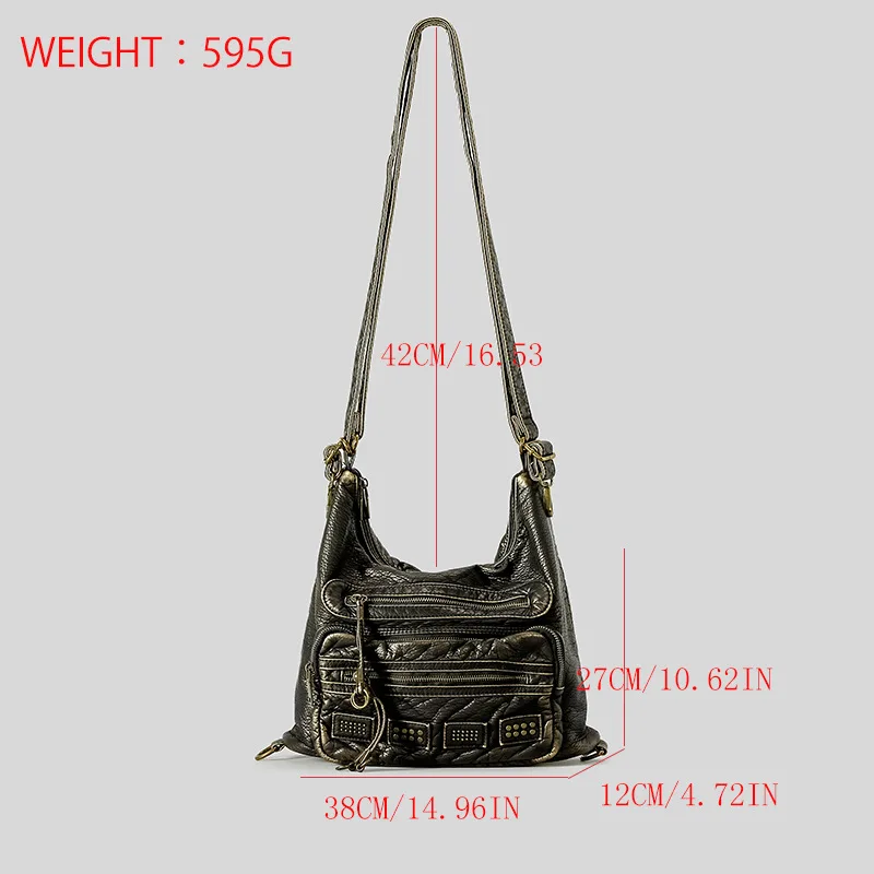 Be the first to review “Y2K Women’s Bag Fashion Retro Rivet Tote Bag Water Washed Soft Leather Large Capacity Commuter Single Shoulder Crossbody Bag”